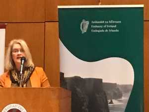 El pasado jueves 12 de septiembre, la poeta irlandesa Moya Cannon y el traductor de su obra y también escritor Jorge Fondebrider presentaron sus obras: “Aves de invierno y otros poemas” y “Dublin”, con la presentación de la Embajadora de Irlanda en Argentina, Sra. Jacqueline O’Halloran Bernstein.