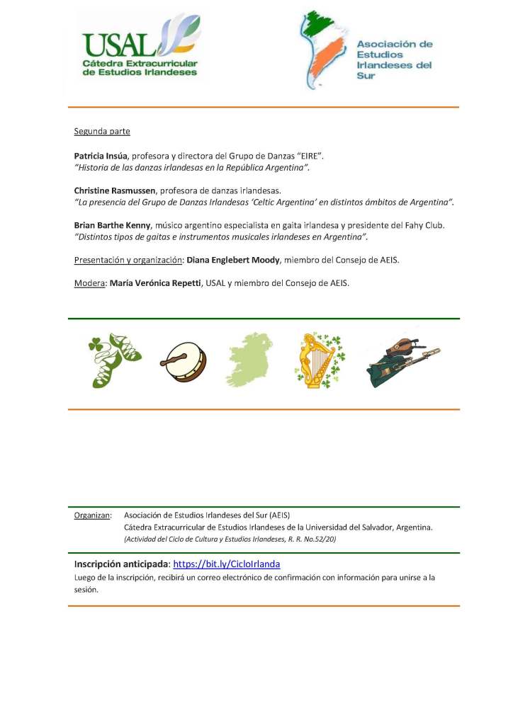 Organizan: Asociación de Estudios Irlandeses del Sur (AEIS) y Cátedra Extracurricular de Estudios Irlandeses de la Universidad del Salvador, Argentina. (Actividad del Ciclo de Cultura y Estudios Irlandeses, R. R. No.52/20)