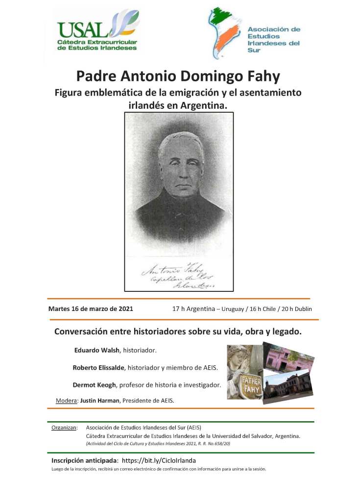 Organizan: Asociación de Estudios Irlandeses del Sur (AEIS) y Cátedra Extracurricular de Estudios Irlandeses de la Universidad del Salvador, Argentina. (Actividad del Ciclo de Cultura y Estudios Irlandeses, R. R. No.658/20)