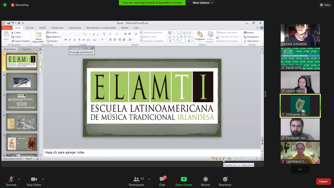 Esta charla estuvo seguida por una Introducción a la música y gaita irlandesa con Pamela Schweblin, talentosa gaitera de Elamti – Escuela Latinoamericana de Música Tradicional Irlandesa que hablará sobre la música irlandesa y sobre las características y particularidades de la gaita irlandesa.