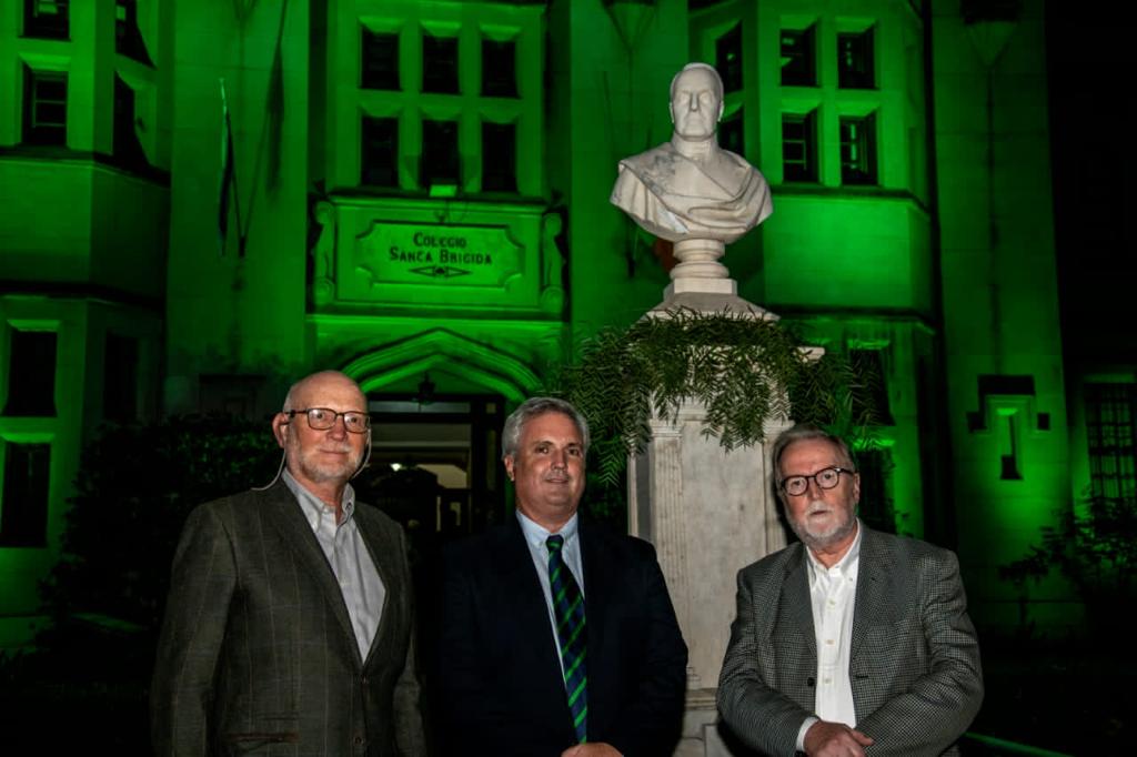 Se realizó una conmemoración del 150 aniversario del fallecimiento del Padre Fahy, organizado por la Asociacion Católica Irlandesa frente a la estatua del P Fahy ubicado en el Colegio Santa Brígida en Plaza Irlanda en Buenos Aires. En la foto: Santiago Rattagan, Presidente de la ACI, el Prof Juan José Delaney y Justin Harman, Presidente de la AEIS.