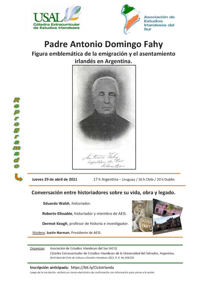 Organizan: Asociación de Estudios Irlandeses del Sur (AEIS) y Cátedra Extracurricular de Estudios Irlandeses de la Universidad del Salvador, Argentina. (Actividad del Ciclo de Cultura y Estudios Irlandeses, R. R. No.658/20)