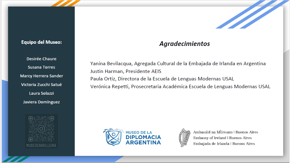 El viernes 18 de marzo tuvo lugar la inauguración de la exposición “Argentina-Irlanda: 100 años de amistad” organizada por el Museo de la Cancillería Argentina y la Embajada de Irlanda, en el Palacio San Martín, con la colaboración de la Asociación de Estudios Irlandeses del Sur y la Cátedra Extracurricular de Estudios Irlandeses de la USAL.