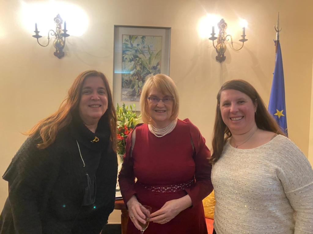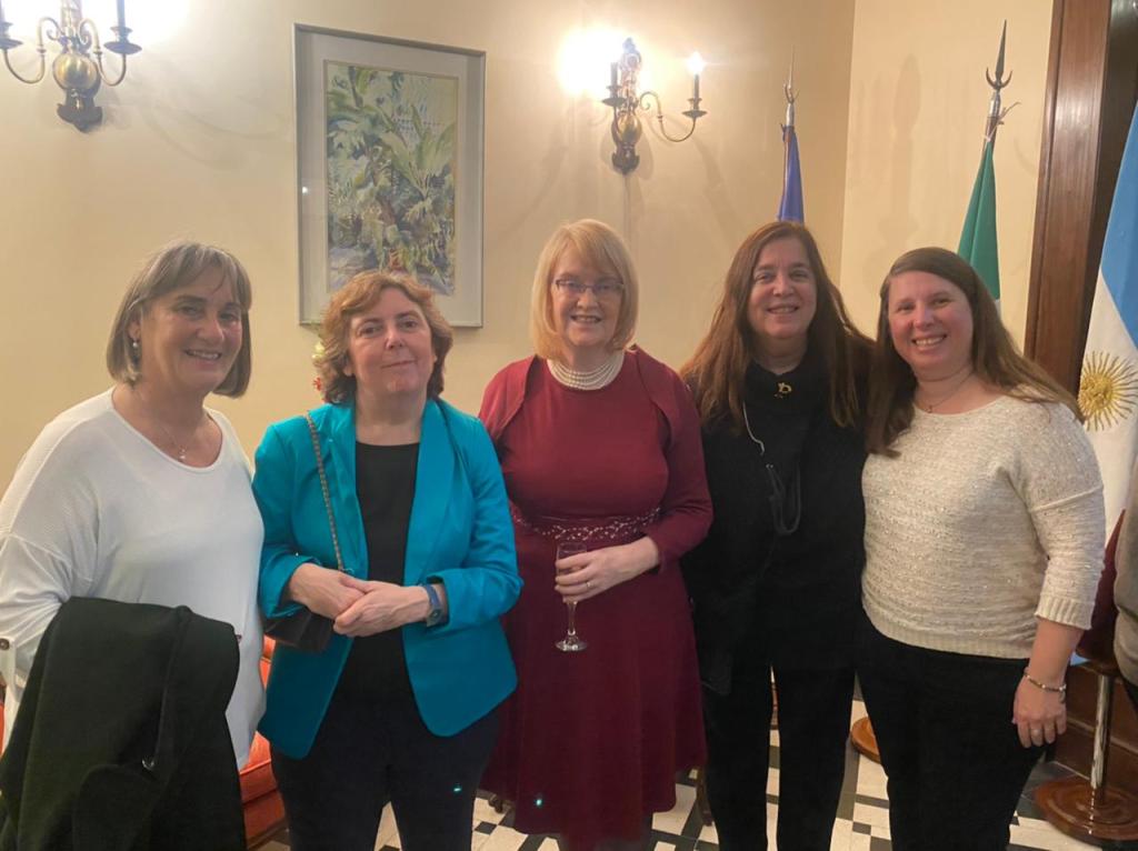 representación también de la Cátedra Extracurricular de Estudios Irlandeses; y la docente y responsable de la Diplomatura en Estudios Irlandeses junto a Viviana Keegan, Dra. María Eugenia Cruset; y Mariela Eliggi, todas ellas también en representación de la Asociación de Estudios Irlandeses del Sur (AEIS).