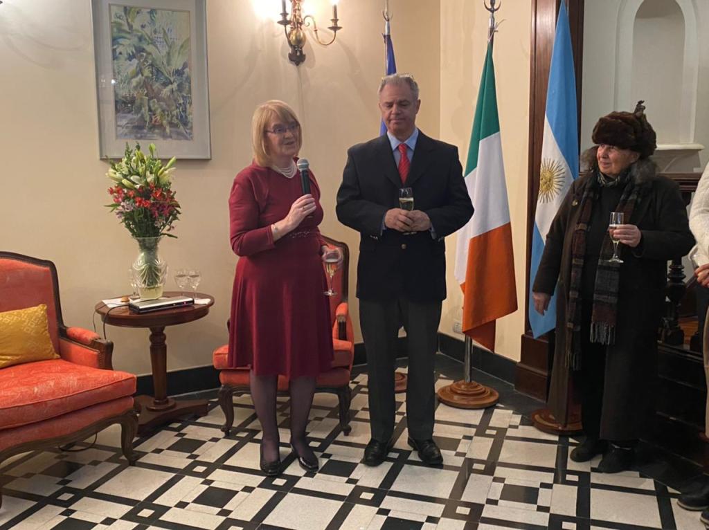 Al promediar la velada, la Embajadora pronunció su discurso de despedida en el que agradeció a todos quienes contribuyeron en sus cuatro años al frente de la Embajada. Para finalizar, la Agregada Cultural y de Prensa de la Embajada, Yanina Bevilacqua, pronunció unas emotivas palabras, destacando la calidad humana de O’Halloran, especialmente durante los años de pandemia.