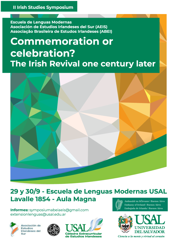 El año 2022 es un año importante para los Estudios Irlandeses en Sudamérica ya que conmemora el centenario del Estado Libre Irlandés, establecido en diciembre de 1922, luego de los tres años que duró la Guerra de la Independencia irlandesa. Al mismo tiempo, el año 2022 es un año de cambios dado que el mundo sale del confinamiento y aislamiento producidos por la pandemia COVID-19 que implicó una amenaza común a todo el planeta. De la misma manera que ocurre en el caso de las guerras, explica Boaventura Souza Santos en A Cruel Pedagogia Do Vírus /The Cruel Pedagogy of the Virus (2020), “la pandemia es una alegoría. El significado literal de la pandemia del coronavirus es el miedo caótico y generalizado y la noción de muerte sin fronteras, causada por un enemigo invisible”. Este trauma colectivo contemporáneo también ha echado luz sobre cuestiones tales como la desigualdad social, las relaciones de género, temas relacionados con las distintas etnias, el acceso a la educación y las necesidades básicas de la población mundial. Sin embargo, en lo que hace a las artes, 2022 es el año del centenario de movimientos artísticos y literarios tales como el Renacimiento irlandés y los Modernismos europeos y latinoamericanos. De este modo, el XVII Simposio de Estudios Irlandeses en Sudamérica de ABEI y III de AEIS constituye una invitación a reconsiderar las maneras en las que los conflictos y crisis, tales como guerras y pandemias han moldeado a las naciones. Al mismo tiempo, este Simposio es una oportunidad de repensar el surgimiento de la literatura y de otras expresiones de las artes que traen al mundo contemporáneo un mensaje de esperanza que trata de resolver esos traumas.