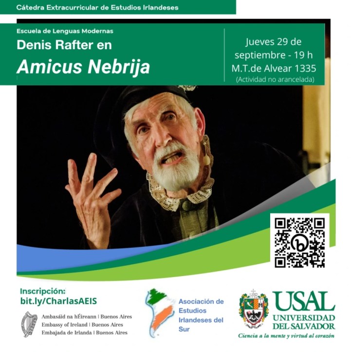 En el marco del Simposio Internacional de Estudios Irlandeses 2022, en su nuevo unipersonal sobre la vida y obra de Elio Antonio de Nebrija, reconocido humanista español y el Padre Fundador de la Lengua Castellana, Denis Rafter presenta el lado humano de este gran personaje histórico para conmemorar el V Centenario de su muerte.