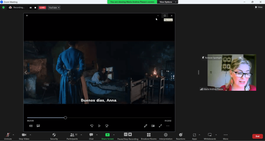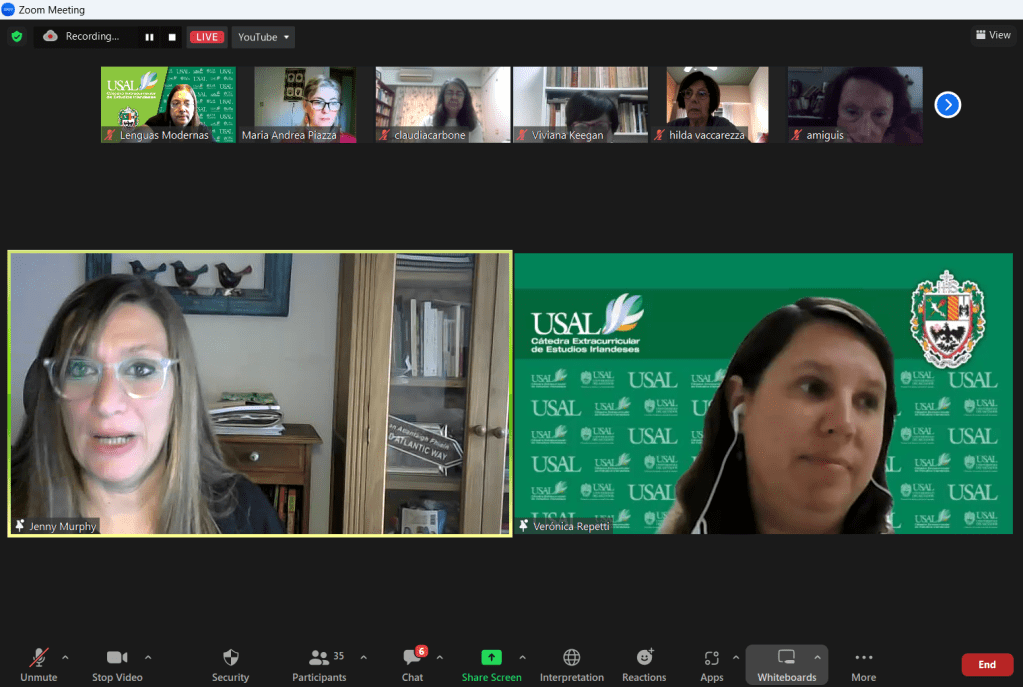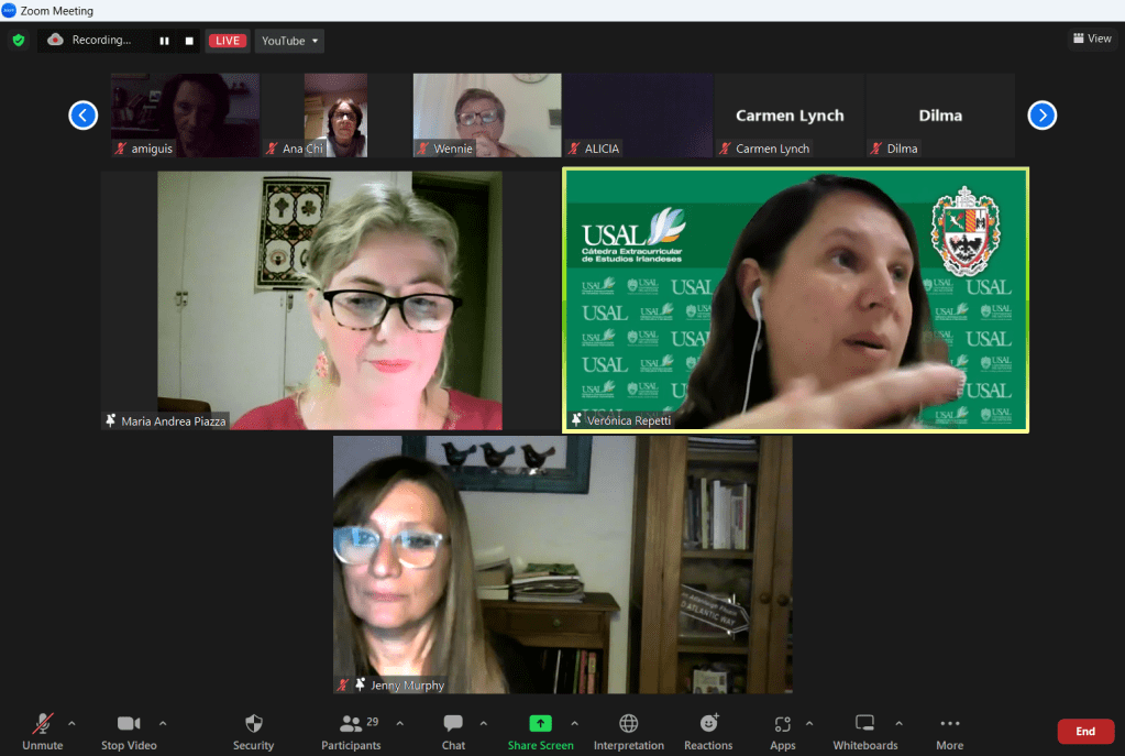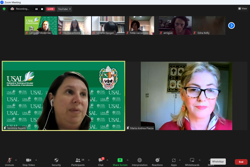 El jueves 27 de abril se llevó a cabo la charla de cine sobre Irlanda que versó sobre la película “El prodigio”. La actividad se desarrolló en modalidad virtual y fue organizada conjuntamente por la Asociación de Estudios Irlandeses del Sur (AEIS), la Cátedra Extracurricular de Estudios Irlandeses de la Escuela de Lenguas Modernas de la USAL, y el Centro de Estudios Salvador (CES). La presentación y análisis de la película estuvieron a cargo de María Andrea Piazza, con una introducción previa por parte de Jenny Murphy, quien se refirió brevemente a Emma Donoghue, autora irlandesa contemporánea, que escribió la novela homónima en la que se basa el film. Contaron con la moderación de Verónica Repetti, Prosecretaria de la Escuela de Lenguas Modernas y miembro del Consejo de AIES. Estuvo presente también la Dra. Paula Ortiz, Directora de la Escuela de Lenguas Modernas y Vicepresidente de AEIS, quien brindó unas palabras de bienvenida.
