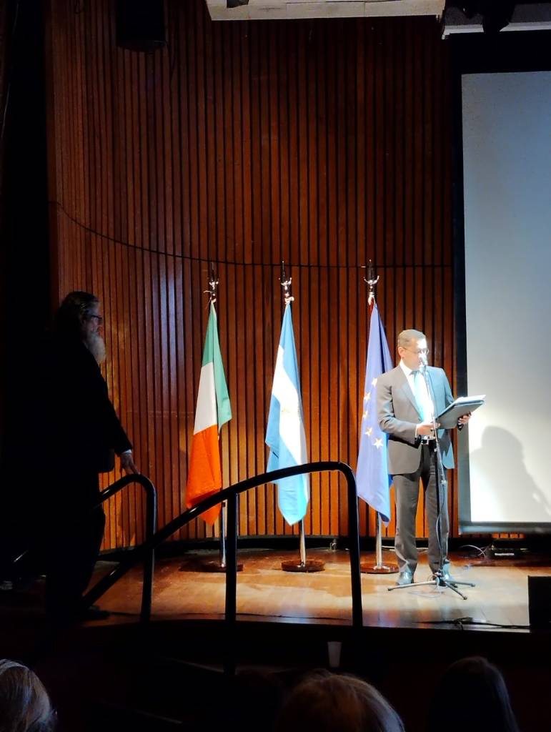 Viviana Keegan, docente de la Diplomatura en Estudios Irlandeses de la Escuela de Lenguas Modernas de la USAL y miembro del consejo de AEIS, participó en representación de la Cátedra Extracurricular de Estudios Irlandeses de la Escuela de Lenguas Modernas y de la Asociación de Estudios Irlandeses del Sur, junto a otros miembros de AEIS: Elisa Boland, Lucas Petersen, Juan Manuel Rizzo y Miguel Guarnochea.
