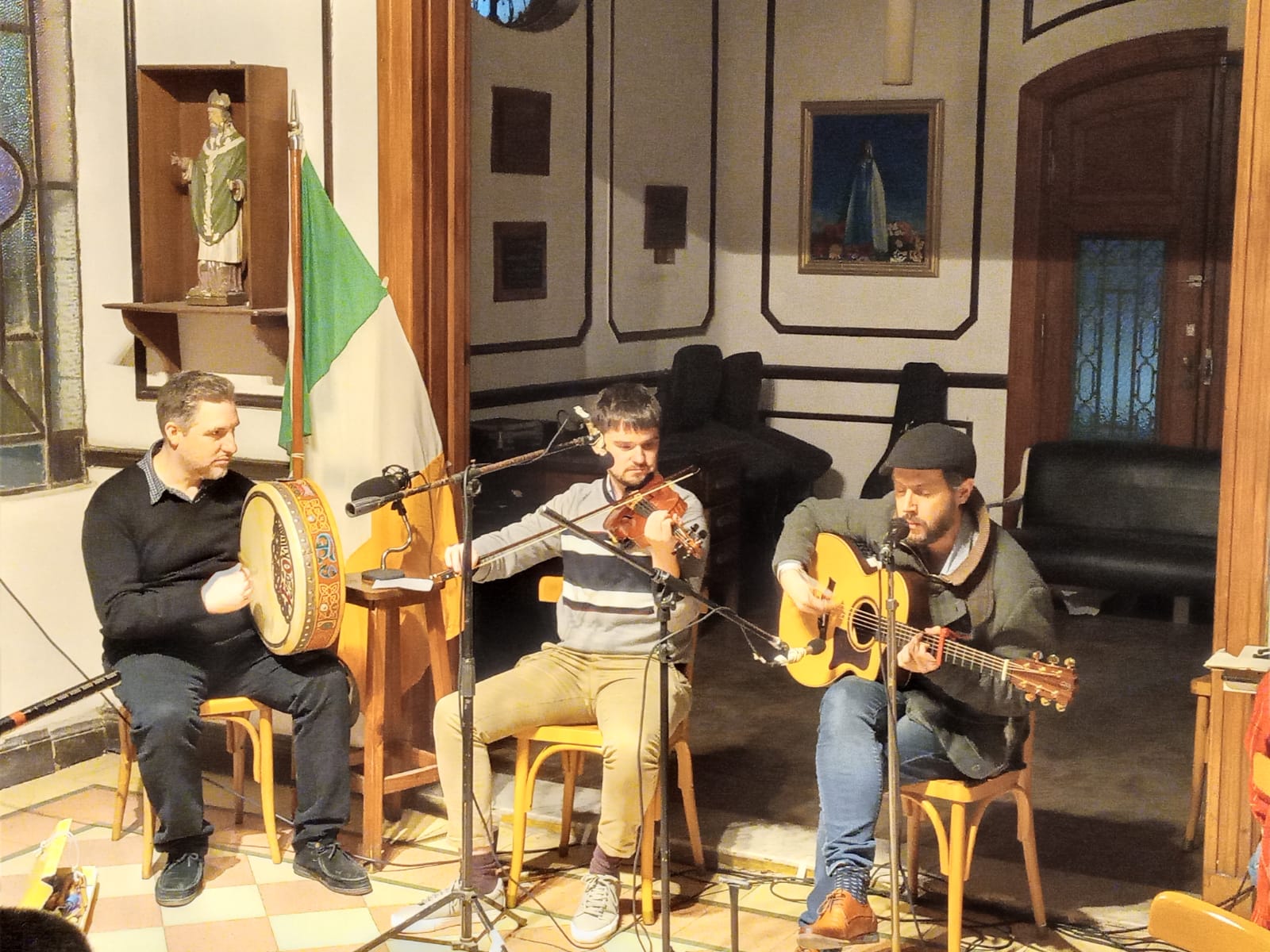 Los acompañó en bodhran Fernando Killian, quien dicta los cursos de idioma gaélico en el Centro de Idiomas de la Escuela de Lenguas Modernas de la USAL. La música que interpretaron tiene relación con la inmigración irlandesa en Argentina.