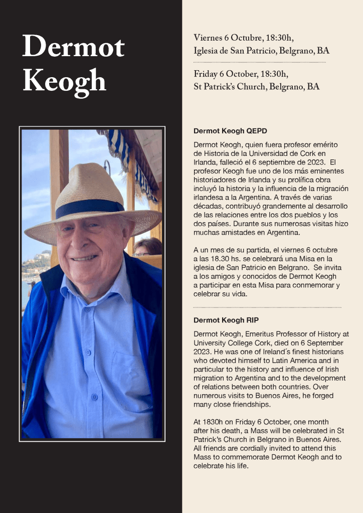 4 October, 20234 October, 2023portizz Misa Dermot Keogh. Viernes 6 de octubre, 1830 h. Iglesia San Patricio de Belgrano. También se transmitirá en vivo por Facebook: https://www.facebook.com/AEISur Comparte esto: Click to share on X (Opens in new window) X Click to share on Facebook (Opens in new window) Facebook Like Loading...