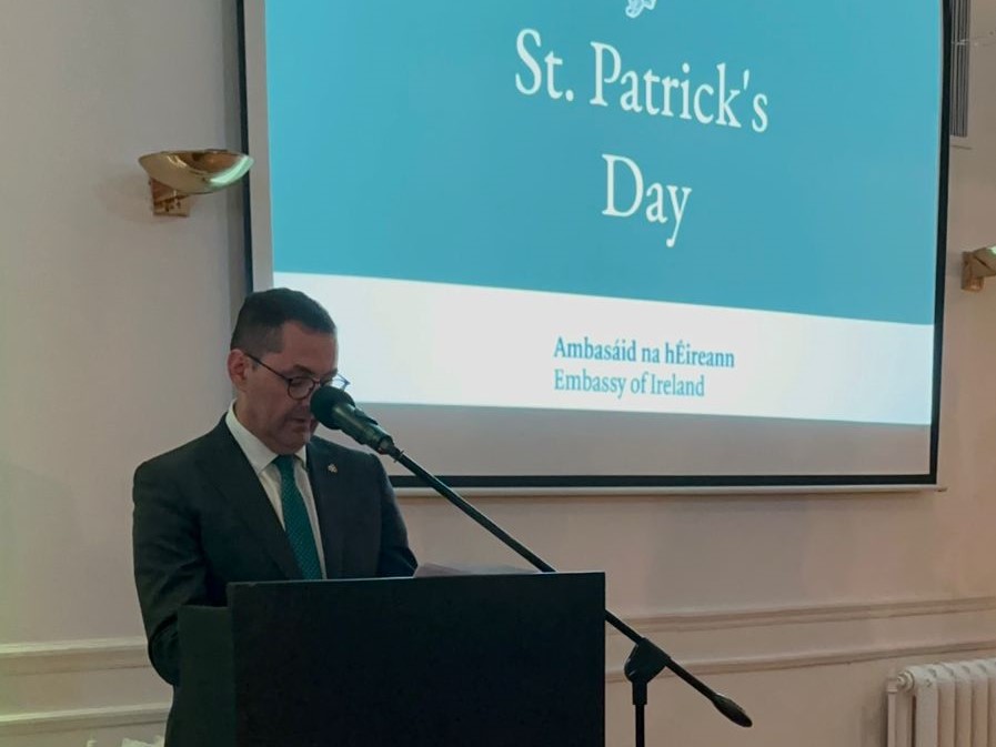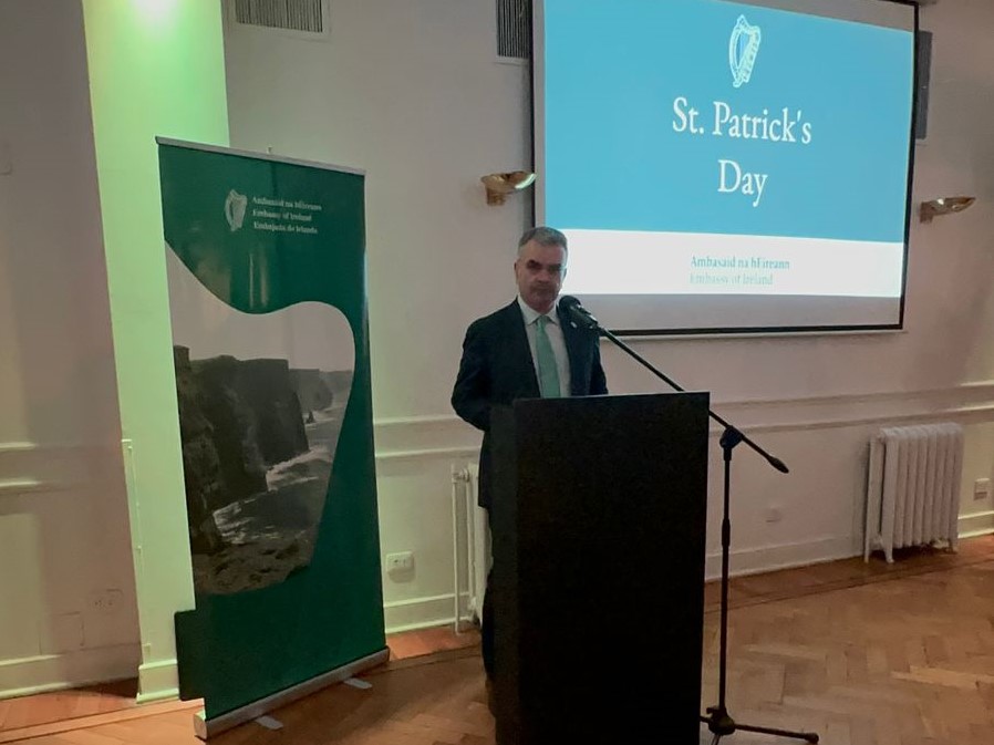 Como es habitual en esta época del año, el lunes 18 de marzo, la Embajada de Irlanda para Argentina, Bolivia, Paraguay y Uruguay ofreció una recepción en el Círculo Italiano, con motivo de la celebración del día nacional de Irlanda, que se celebra en el día de San Patricio, en conmemoración de la muerte del santo patrono de la isla, cada 17 de marzo.