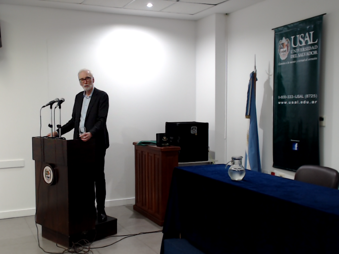 A lo largo de una hora, el profesor Ó Giolláin se refirió a las similitudes y diferencias entre Irlanda y Argentina, trazando un recorrido sistemático y dinámico a través de la historia de ambos países que da cuenta de los rasgos idiosincráticos y culturales de estas dos naciones, y cómo la diáspora irlandesa a la Argentina tuvo influencia en la conformación social de nuestro país.