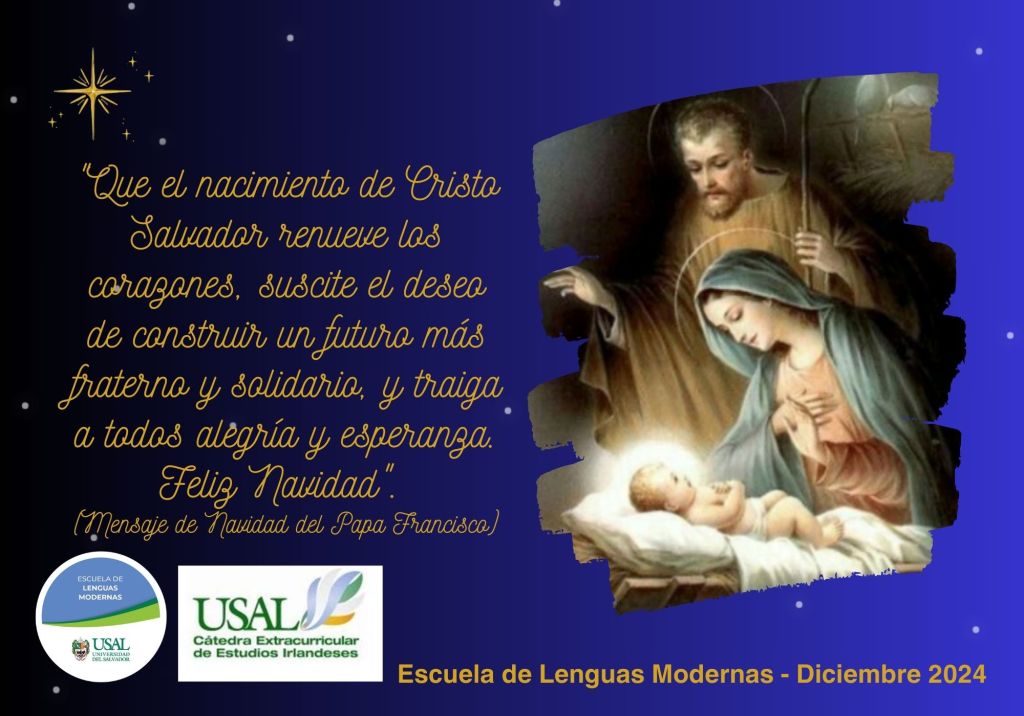 “Que el nacimiento de Cristo Salvador renueve los corazones, suscite el deseo de construir un futuro más fraterno y solidario, y traiga a todos alegría y esperanza. Feliz Navidad”.