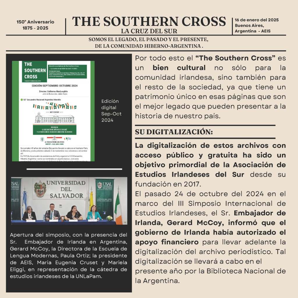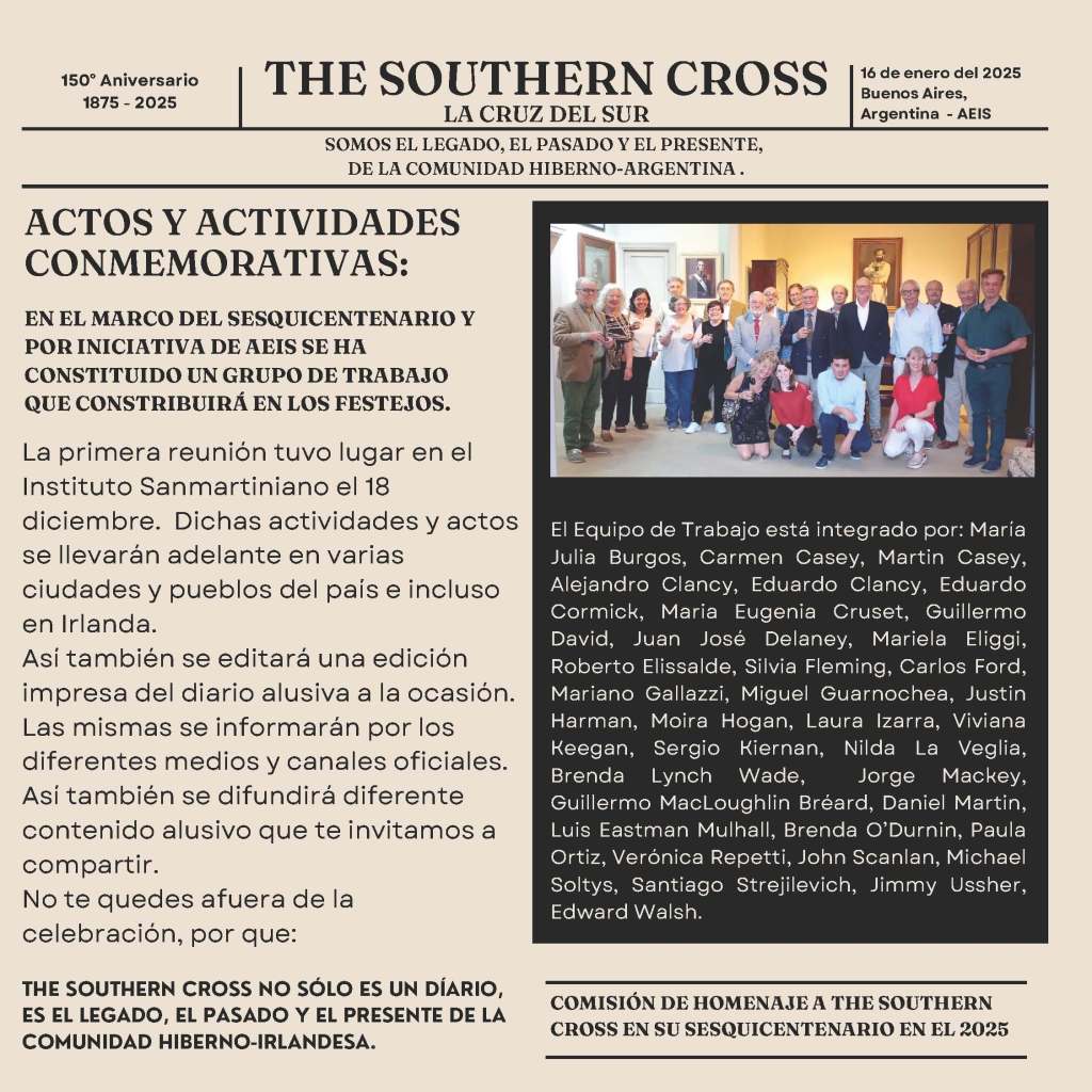 THE SOUTHERN CROSS NO SÓLO ES UN DIARIO, ES EL LEGADO, EL PASADO Y EL PRESENTE DE LA COMUNIDAD HIBERNO-ARGENTINA.☘️