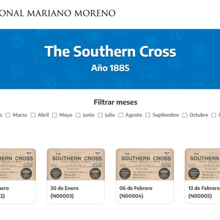 Digitalización del año 1885 del periódico The Southern Cross, disponible en micrositio de la Biblioteca Nacional Mariano Moreno.