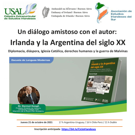 Un diálogo amistoso con el autor: Irlanda y la Argentina del siglo XX. Jueves 21 de octubre de 2021, 17 h.