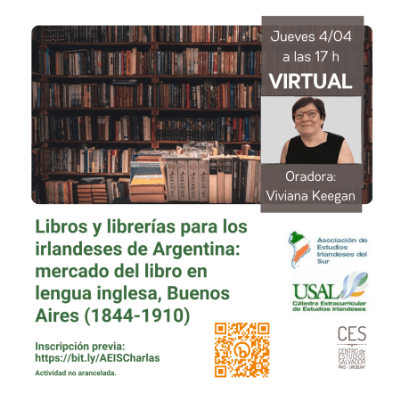 Charla: Libros y librerías para los irlandeses de Argentina: mercado del libro en lengua inglesa, Buenos Aires (1844-1910). Jueves 4 de abril, 17 h