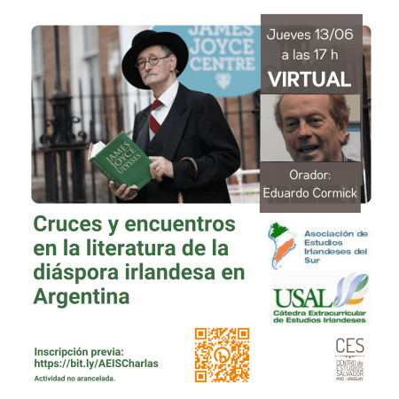 Charla: Cruces y encuentros en la literatura de la diáspora irlandesa en Argentina. Jueves 13 de junio, 17 h